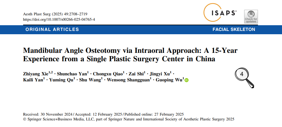 随着社会对美学追求的提升与医疗技术的飞速发展,面部轮廓整形手术已成为亚洲地区,尤其是东亚文化圈中备受关注的美容外科领域。近期,吴国平教授团队一系列聚焦于下颌角与颧骨整形术式创新、疗效评估及影响因素的高水平研究相继发表,从不同维度揭示了该领域在精准化、个性化与安全性方面取得的重要进展。本文将对这四项研究进行综合解读,展现当代面部轮廓整形术的发展脉络与未来方向。